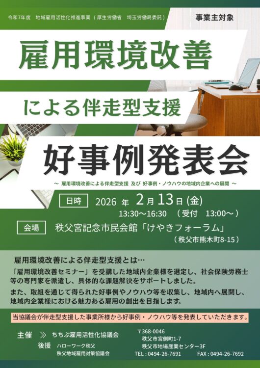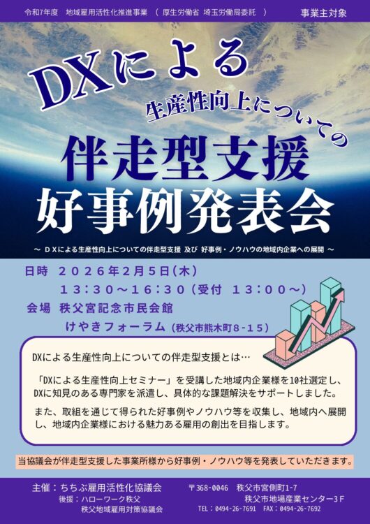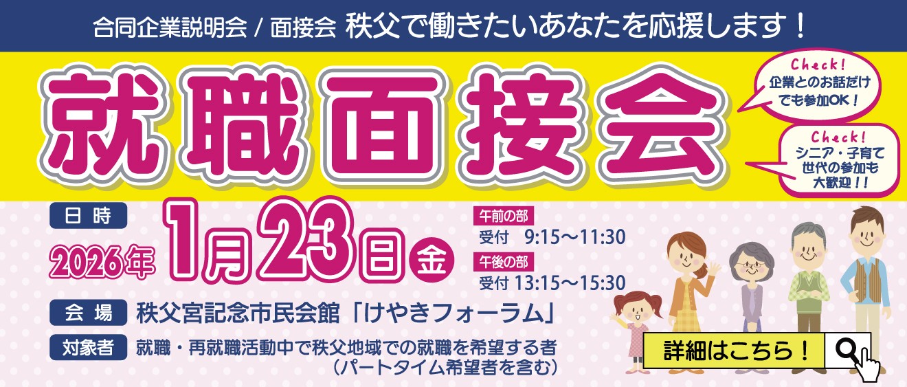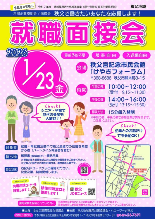 ~ちちぶで働きたいあなたを応援します!~ 令和8年1月23日(金)第2回 合同就職面接会を開催します! 随時更新していきますので要CHECK!